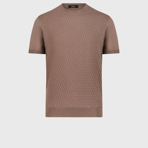 قميص محبوك من الحرير "ميكرو لوزينج" - كراميل باهت