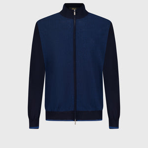 بولو "باسكت" حريري وقطني محبوك بسحاب برقبة قطنية - أزرق كحلي