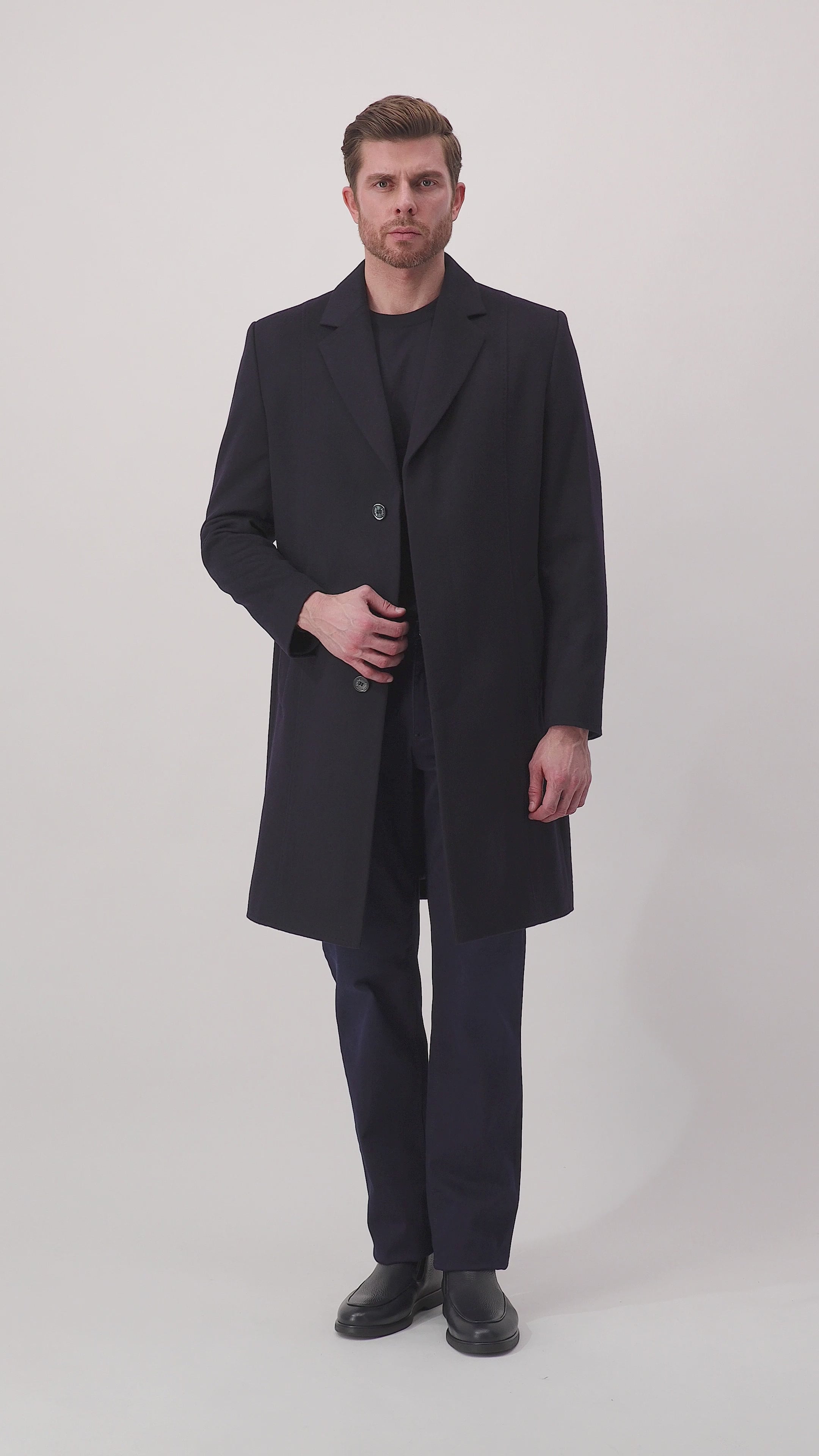 Это синее пальто темно-синего цвета, выполненное из роскошного кашемира, имеет боковые карманы, которые придают ему практичность и изысканность. Это пальто, предназначенное для создания образа в стиле business casual, сочетает в себе элегантность и комфорт, что делает его незаменимой вещью для изысканного и универсального гардероба.