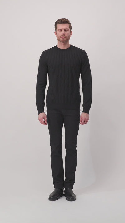Пуловер с кабельным узором черный