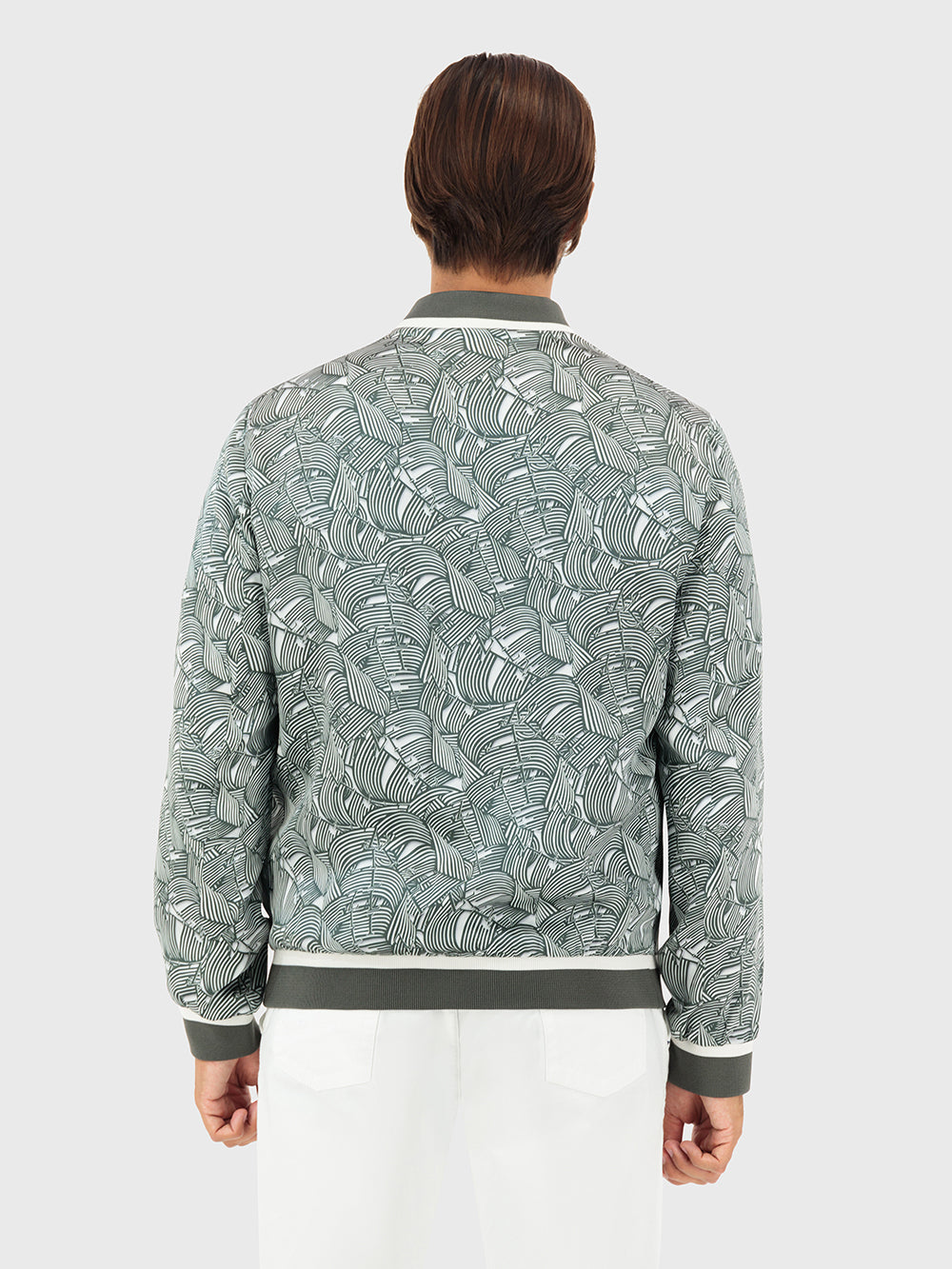 Невероятно легкая и мягкая шелковая ткань этой куртки-бомбера украшена элегантным узором "кинолента". Изысканная текстура и непринужденные пропорции создают утонченный и в то же время расслабленный образ.