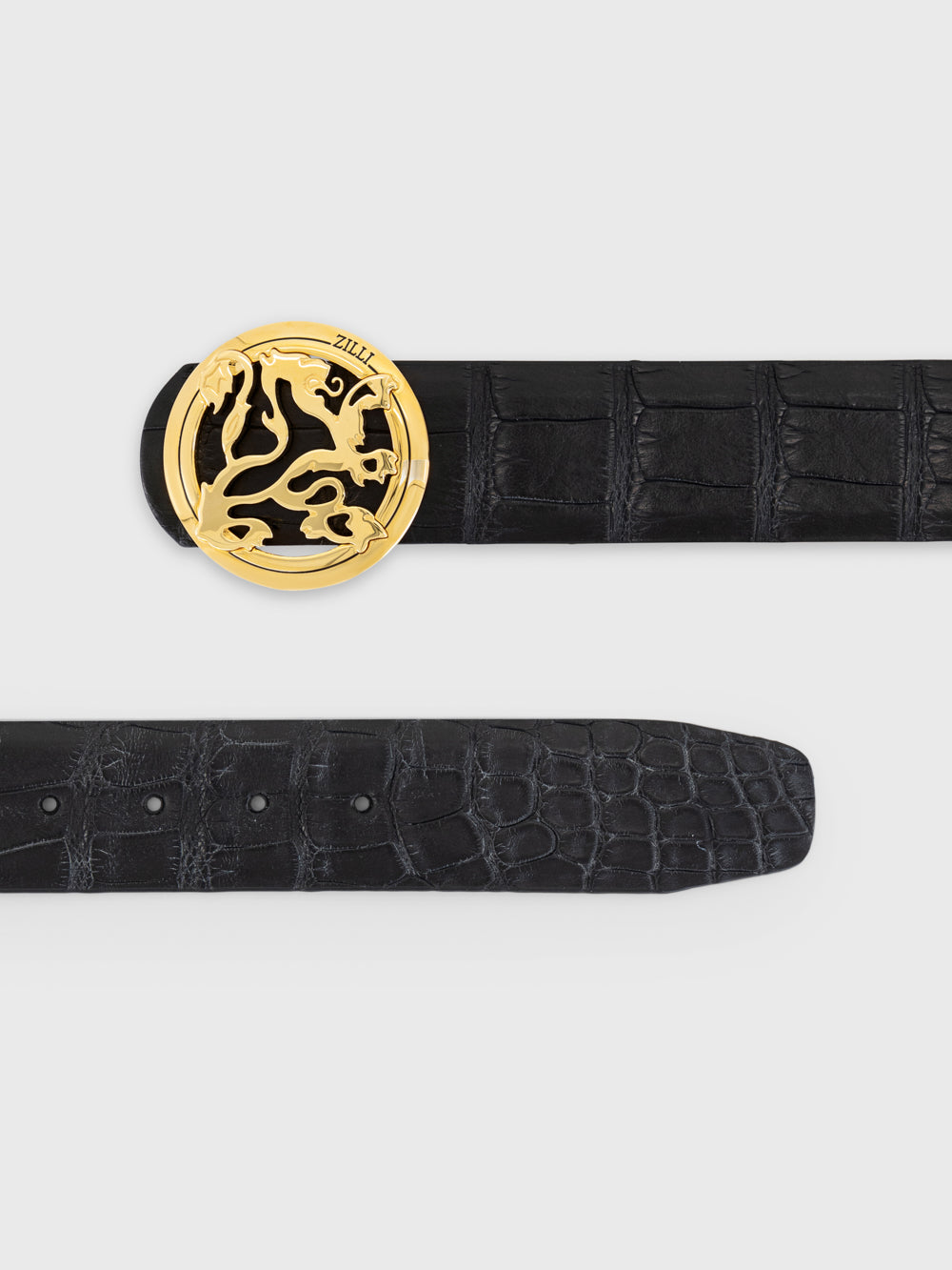 Ремень с золотой пряжкой в виде льва из крокодила - черный